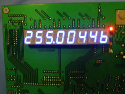 rotating the encoder by hand to produce one pulse per sample period (one second), the following pics show rpm, frequency and period. the software must be modified because the divide by n reads the maximum dipswitch value (255). this is a simple change to the routine that reads the dipswitch value (n + 1). this is a little obvious in the period display (which is the approximate dipswitch value).